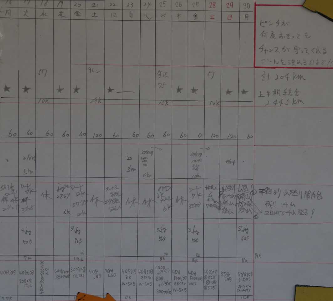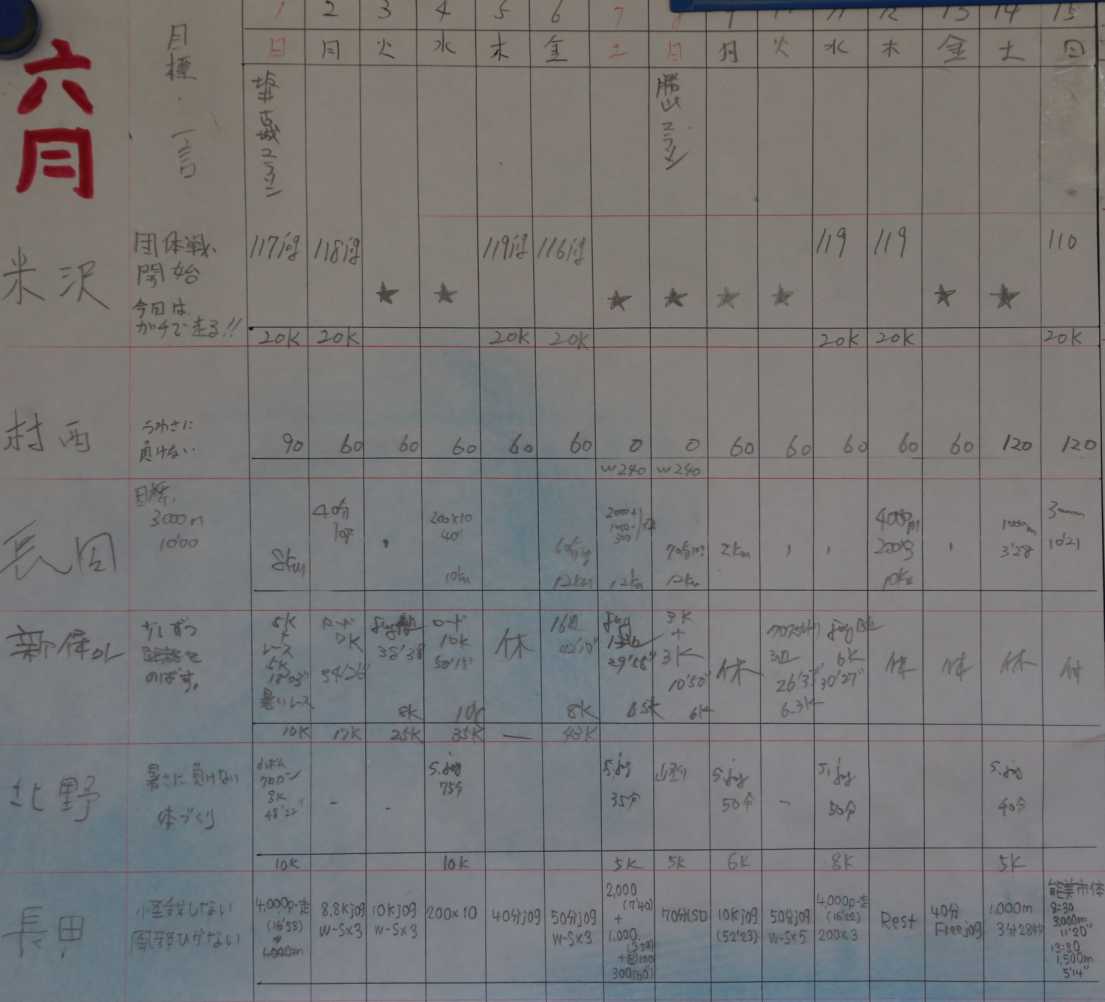 | 長田 | 3 10'21.33 | 1 3'28 | 200*10 40 4000+200*3 | 2000+1000+300)*2 1200+800+300 1*2 3'20,25 | ||