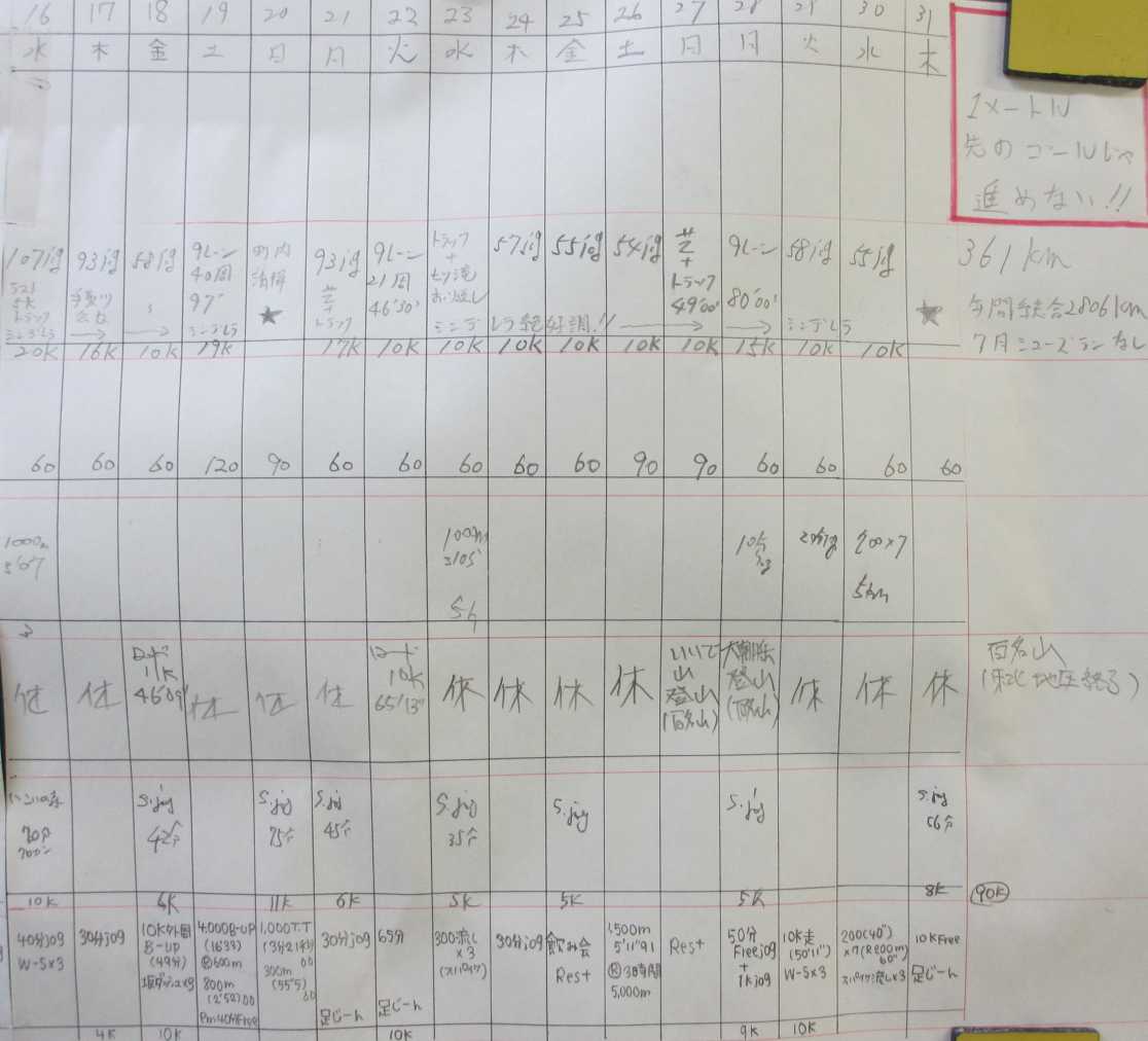 | 順位 | 選手 | 練習量 | 日平均 | 20km以上 | 備考 |
