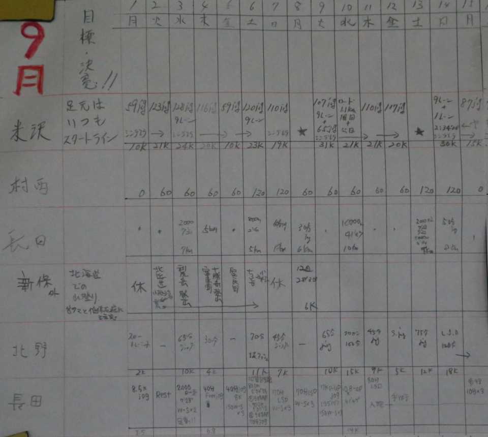 1000m*5 3'57 54 52 43 35 平均3'48.1 1000m*5 3'48 45 39 37 30 平均3'39.8 |