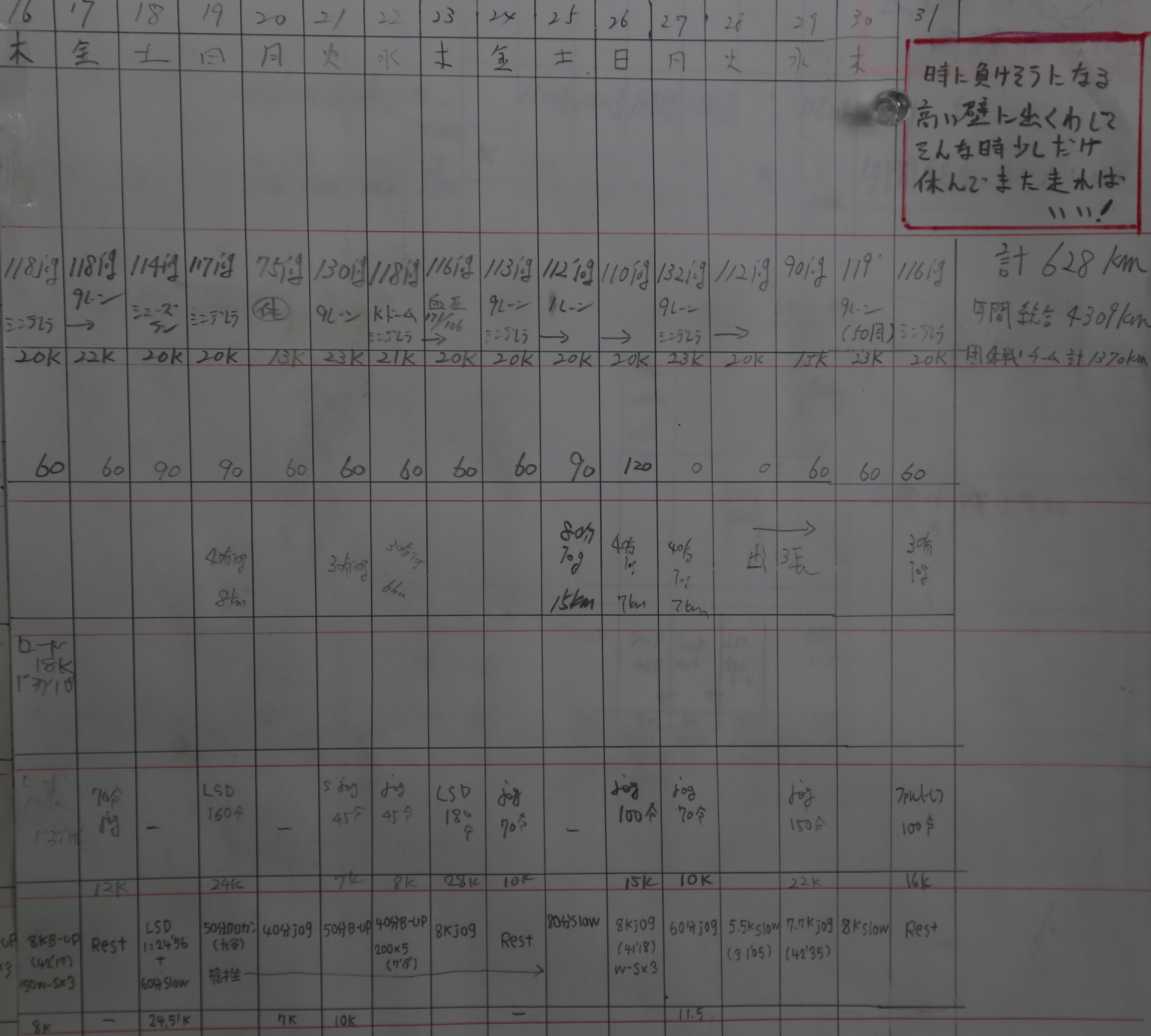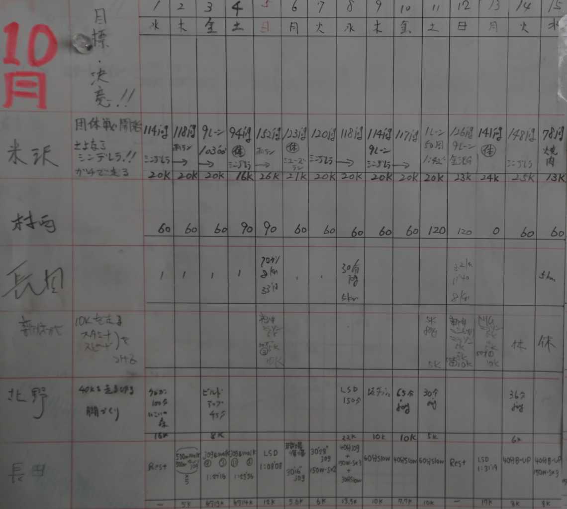 | 順位 | 選手 | 練習量 | 日平均 | 20km以上 | 備考 |