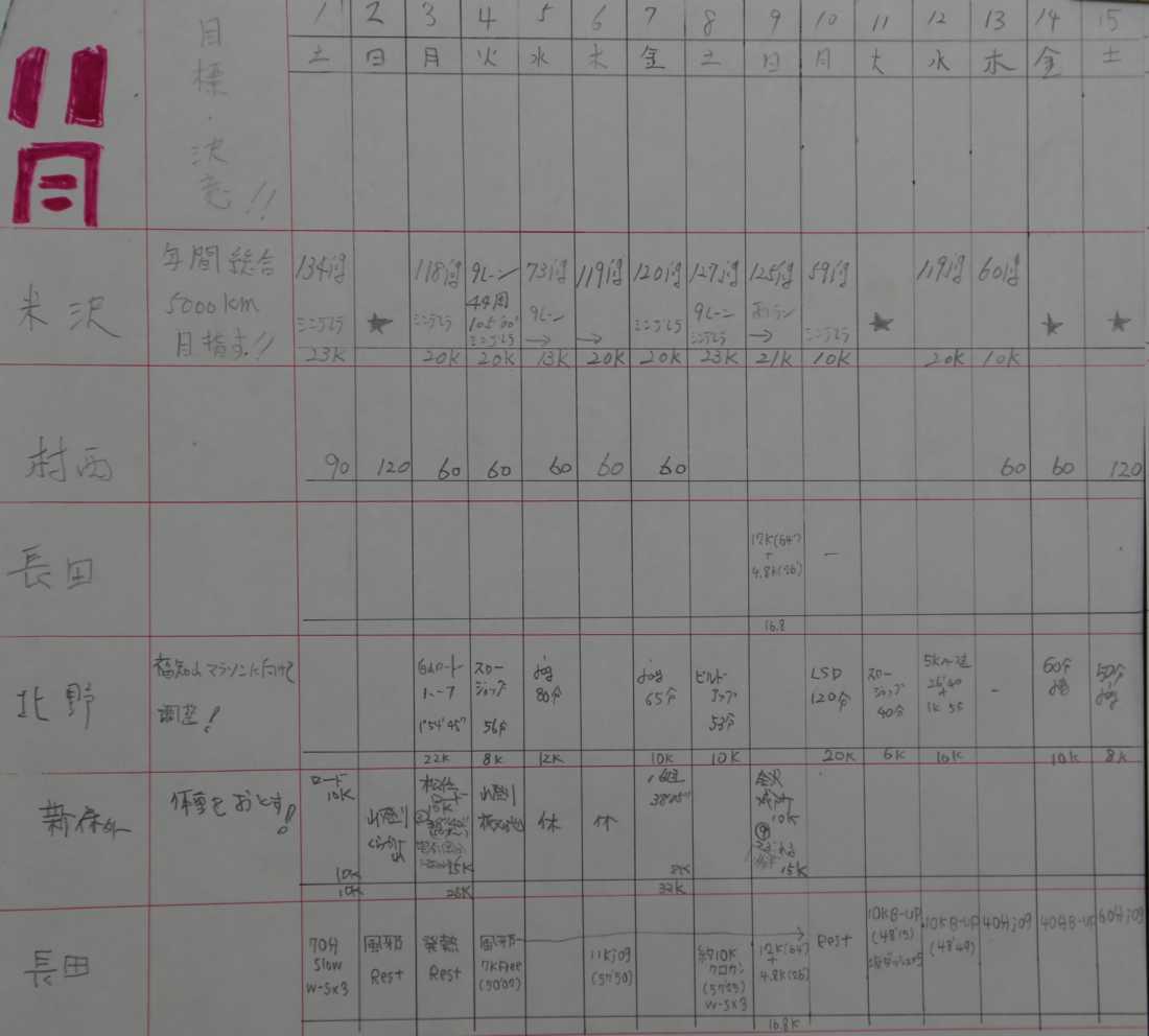 | 米沢弟 | 9レ44 105'00 1万 49'29 1万 48'11 裸足ダウン 2万 1:37'26 はだしbest |