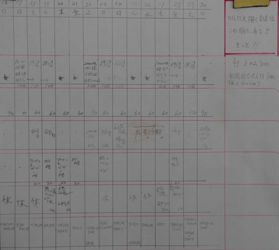 | 順位 | 選手 | 練習量 | 日平均 | 20km以上 | 備考 |