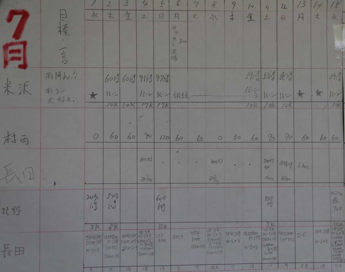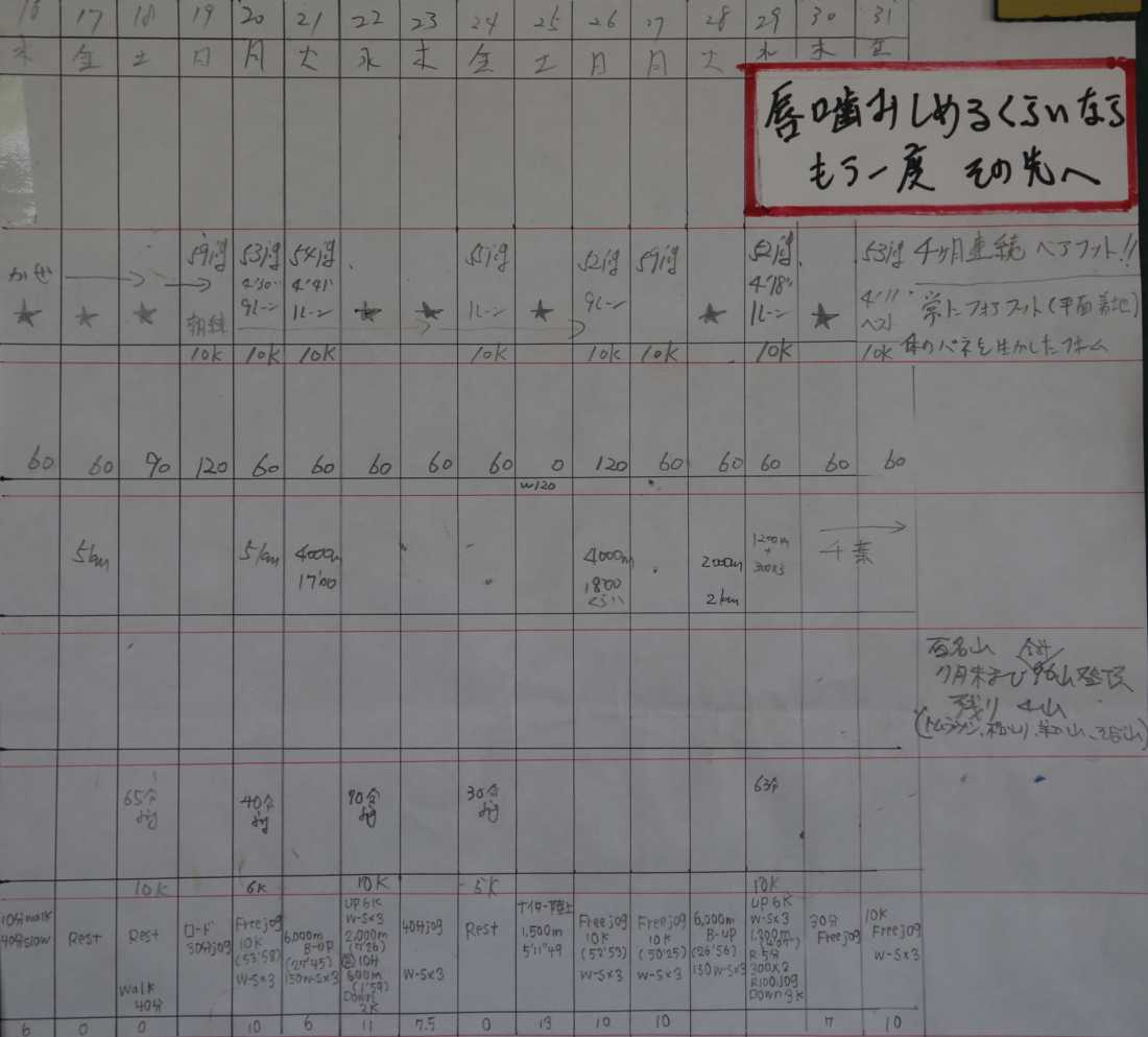 | 順位 | 選手 | 練習量 | 日平均 | 20km以上 | 備考 |