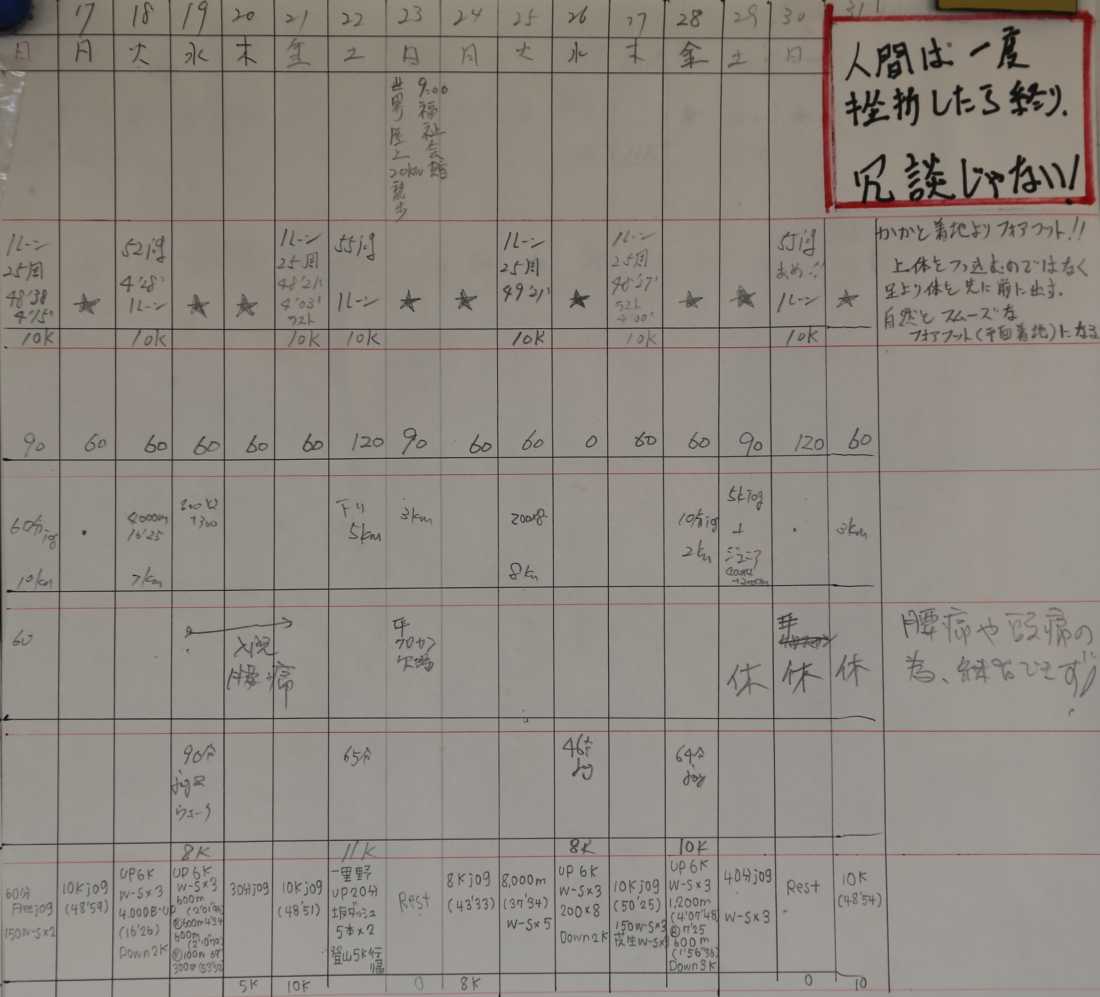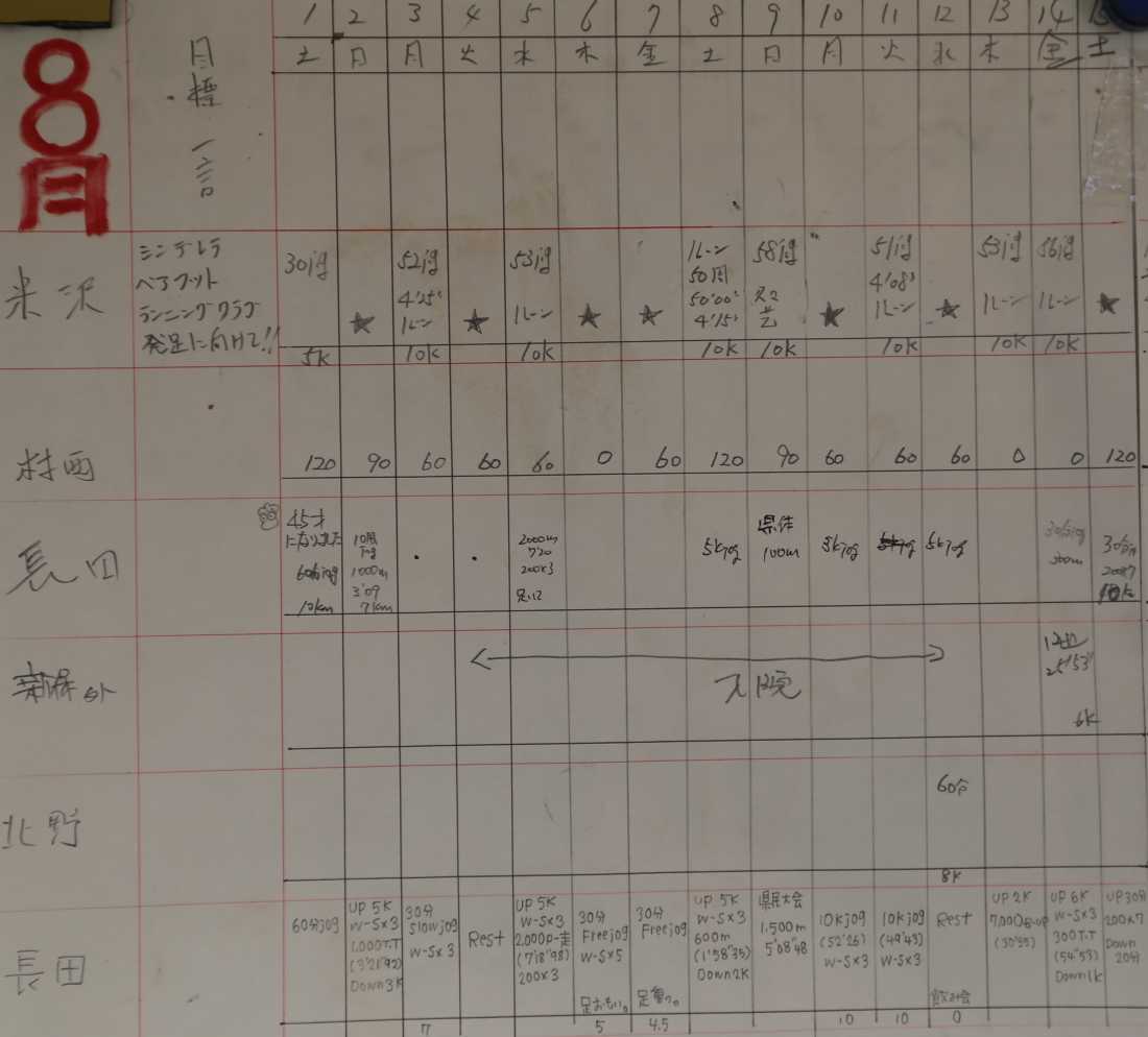 | 順位 | 選手 | 練習量 | 日平均 | 20km以上 | 備考 |