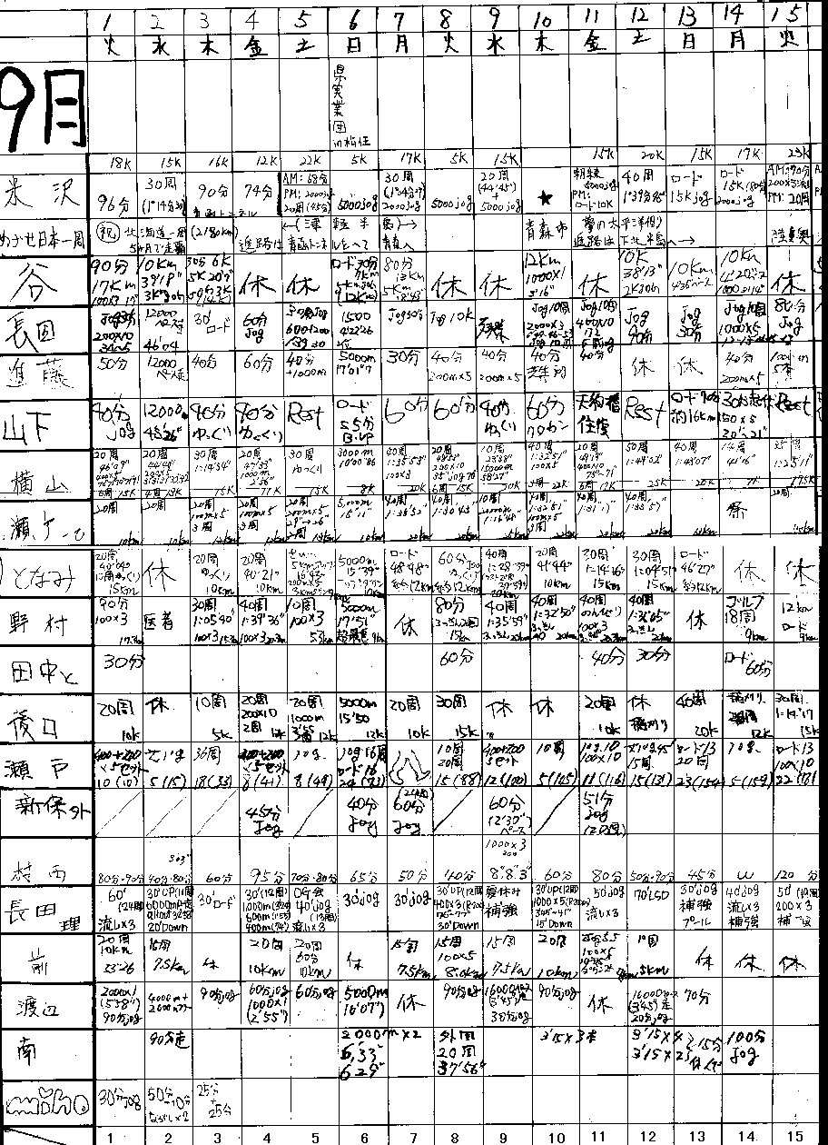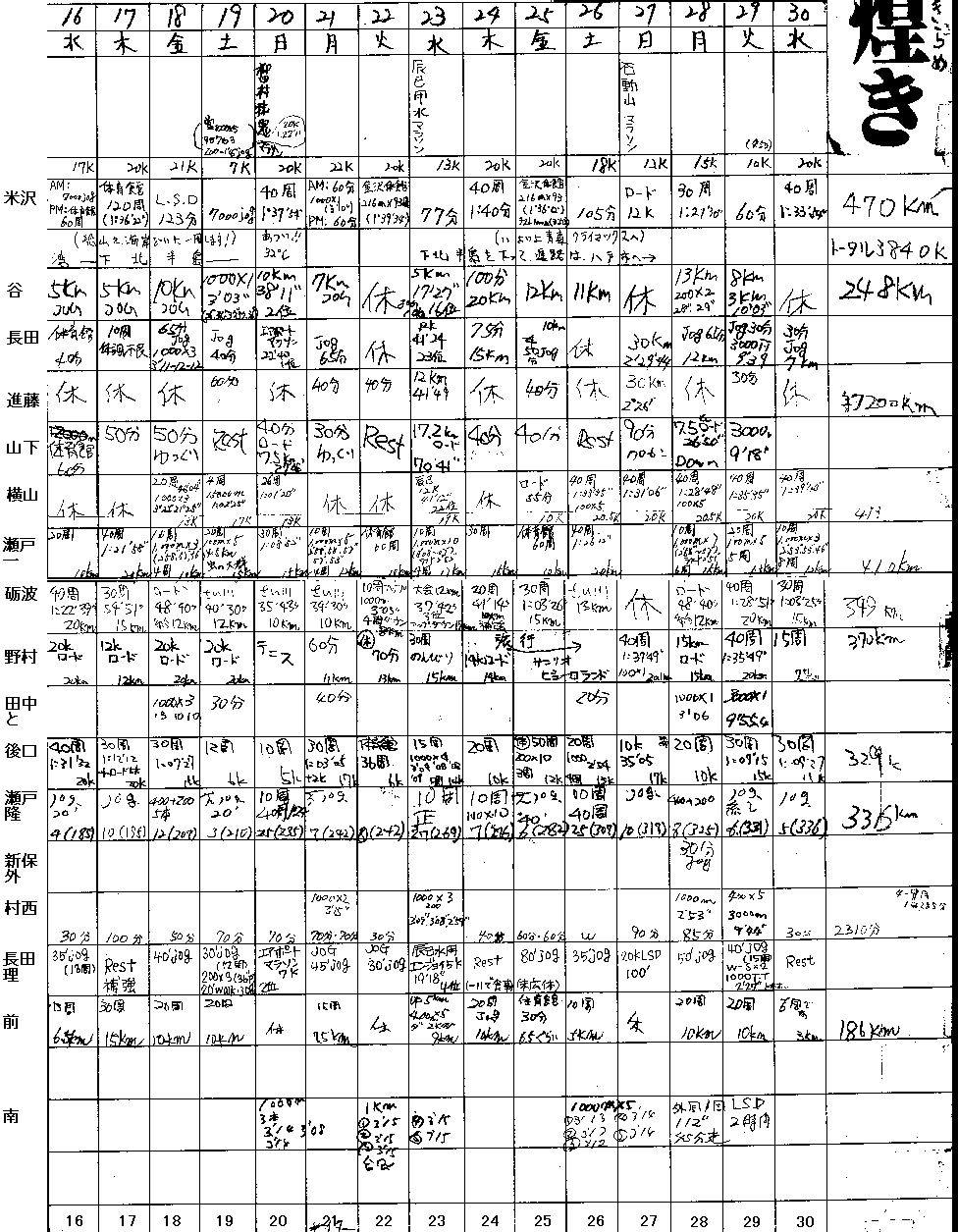 | 順位 | 練習量 | 日平均 | 20km以上 | 備考 | |