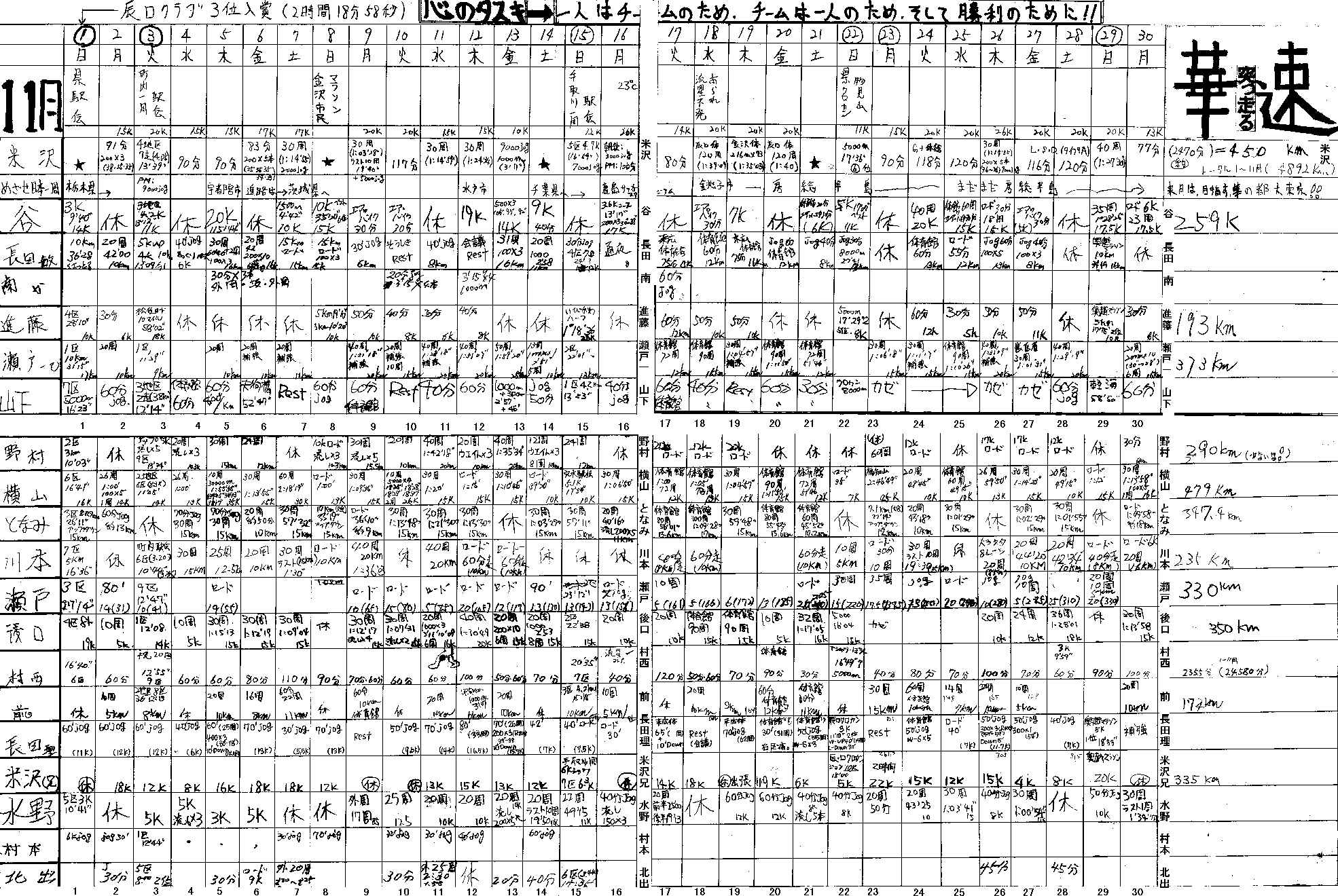 | 順位 | 選手 | 練習量 | 日平均 | 20km以上 | 備考 |