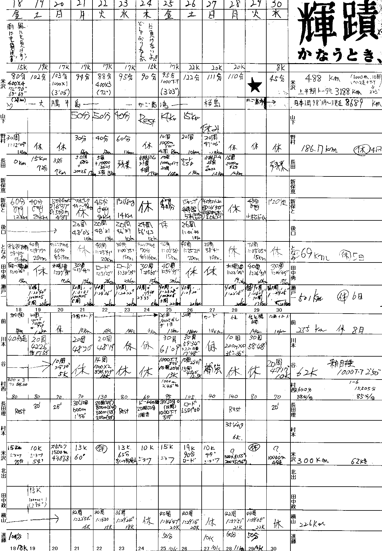 | 谷 | 1: 3'02 | 100× 6 :18〜19 | 1000×2:3'30,19 | ||