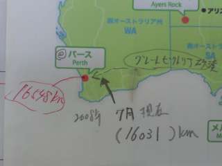 | 6月 | 今月2091km 総合14402km オーストラリア大陸(トレンズ湖)周辺走行中です。 前回シドニー手前で更新が終えてると思うのでそこから、メルボルン(13489km)アデレード(14147km)そこから現在地トレンズ湖(14402km)です。 この先進路は、グレートビクトリア砂漠横断して次の都市(パース)に向かいます。7月いっぱいまではこのペースではオーストラリア脱出は不可能です。 ちょうどスタートして半年過ぎました。14402km. こんなはずではないと思うので仮に15000kmとして一年で30000kmです。 世界一周総合距離が100000kmとしてゴールの目安がほぼたちました。後半ラストスパート掛けたとしてギリ3年で達成です。 ただし、総合距離が10万キロと仮定してです。 私、大雑把に計算した結果(このルール上でのルート)で行くと、よほど削らない限り10万km以上は確実にあると思う。アメリカ大陸縦断するだけで(ルール上で)1年近くかかる計算になる。 自分たちは、とてつもない計画(プロジェクト)に挑んでる事になりますね。 自分の復活なくしてこの企画は達成不可能と判断! うぅ〜ん 23オーストラリア |