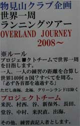 アトランタ〜デトロイトまでのルートを最短距離で計算しなおした結果、8月3日時点でワシントンに無事到着ゴールしました。 世界一周ランニングツアー2008〜2012 総合距離ー137627km。ツアー日数4年7ヵ月と34日。これまでのルート、データーに関してはこのHPのランニングツアーガイドを開いて見てください。この企画、批判する人もいましたが応援してくれた人達(学生を含む)もいます。チームがここまでたどり着けたのは応援してくれた人達っが守ってくれたからだと思ってます。ありがとうございました。 プロジェクトチーム 米沢、村西、堂谷、中村、谷、北川、長田、新保、長田理、米澤、出海、第2章からは佐々木、葛城、源(兄)宮野、ファイナルからは、源(弟)以上16名。抜けてませんのね?忘れてる人いたら申し出てください。すぐ捜索願いだします。137627と言う数字は上記のチームすべての合計です。 チームはこれで解散します。皆さんは飛行機で物見山へ帰還してください。自分は大阪空港から東北目指して走ります。追加プロジェクト、PROGRESS前進!です。年内には岐路に着く予定です。 |