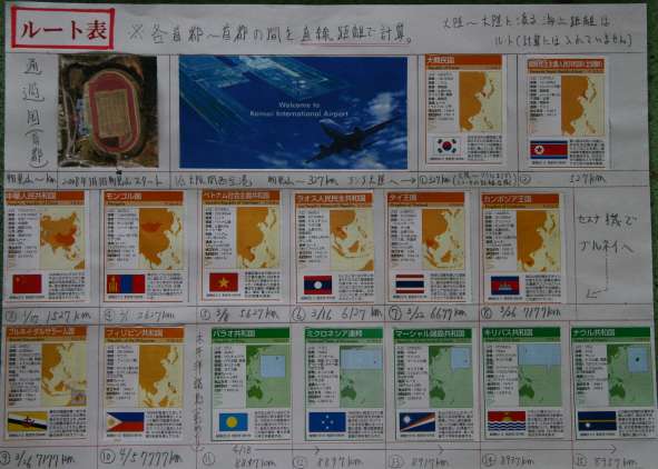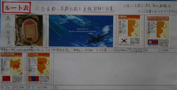 | 1月 | 物見山から2562km ルート表 関西空港 1大韓民国 2北朝鮮 3中華人民共和国 4モンゴル |