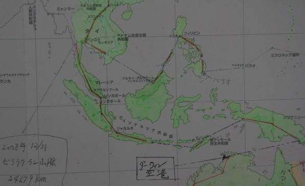| 11月 | 今月1655km 11月30日 総合距離ー22783km パプアニューギニア島〜高飛びして25東ティモール(ディリ)〜26インドネシア(ジャカルタ)大スンダ列島縦断中です。 現在地ーインドネシア列島縦断、シンガポールまであと300km手前地点です。 この先進路は、マレーシア〜ミャマーに向かいます。 |
