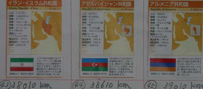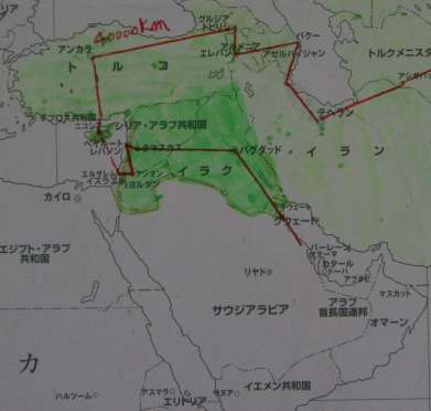 今月2430km 世界一周総合40189km 6月30日付け更新 個人距離ー出海452km、北川317q、中村306q、米沢(兄)282q、堂谷363q、村西305q、米沢160q、長田121q、新保84q、谷40q 先月から、43イラン(テヘラン)38010q〜カスピ海沿いに北上して、44アセルバイジャン(バグー)38610q〜45アルメニア(エレバン)39010km〜46グルジア(トビリシ)39190km〜おっと、まだ行くか〜!さらに、47トルコ(アンカラ)。。。。はい!ストップ!そう、そう言うことで、トルコ(アンカラ)で40060km。 祝ー40000km達成!万歳、万歳、万歳、はい拍手、パチ、パチ、パチ、パチ、パチ、パチ…。。。。。。^^ それから少し走って......右欄 43イラン,44アセルバイジャン,45アルメニア 46グルジア,47トルコ |