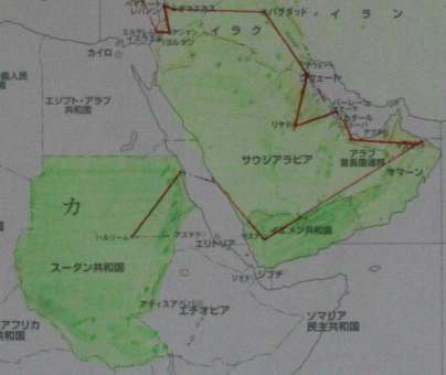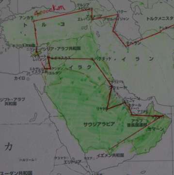 今月2360km 世界一周総合44987km 8月31日付け更新です。 個人距離ー米沢(直)391km、堂谷365km、北川363km、出海357km、中村333km、村西315km、新保89km、長田76km、米沢64km、谷7km 先月、クエート〜バーレーンへ向かう途中で更新が終えてると思います。が、進路を変更して先にリヤードへ向かいます。 サウジアラビア(リヤード)42760km、〜バーレーン(マナーマ)43210km、〜カタール(ドーハ)43340km、〜ペルシャ湾沿いに走って、オマーン(マスカト)44270km、〜イエメン(サヌア)へ向かう途中です。 55サウジアラビア〜56バーレーン〜57カタール、58オマーン |
