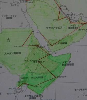 現在地ーアフリカ大陸、ソマリア(モガディシュ)まであと528km手前地点です。 この先進路は、ケニア〜ウガンダ〜ルワンダ〜ブルンジ〜タンザニアへと駈け向けて行きます。 |
