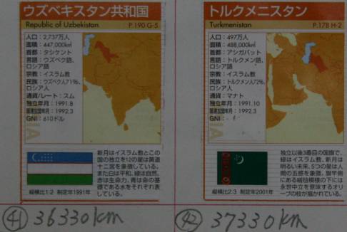 2745km 世界一周総合37759km 5月51日付け更新 個人距離ー堂谷419k、出海388k、北川304k、中村350k、米沢兄342k、村西300k、長田255k、新保147k+44k(先月追加分)191k、米沢94k、谷84k サガフスタン(アスタナ)35200km〜折り返し南下して、ウズベキスタン(タシケント)36330km〜トルクメニスタン(アシカバード)37330km〜イラン(テヘラン)へ向かう途中です。 総合距離、おそらく今月で40000kmに到達します。そう赤道上で地球一周すると40000kmです。地球一周分の距離は走破した(する)事になります。日数的には遅いいんですが。まあそこは、さて置いて。。。。。 企画上これでおよそ3分の1、行くか行かないかと言った感じでしょう。3倍すれば120000kmあと4年、かかる計算になります。 40カザフスタン 41ウズベキスタン、42トルクメニスタン |