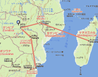 1月31日付け更新(2/9)1月チーム総合ー2783km世界一周総合ー56984km 個人距離ー出海631km、堂谷382km、米沢325km、中村316km、村西310km、米沢(直)296km、北川246km、長田230km、新保37km、谷10km 先月アフリカ大陸インド洋沖、73マダガスカル島(アンタナナリボ)54379km〜高飛びしてアフリカ大陸再上陸、74マラウィ(リロングウェ)54979km〜75ザンビア(ルカサ)55579km〜76ジンバブエ(ハラレ)55979km〜77モザンビーク(マプト)56879km〜78スワンジランド(ムババネ)56984km 73マダガスカル島〜74マラウィ〜75ザンビア〜76ジンバブエ〜77モザンビーク〜78スワンジランド |