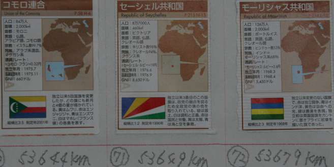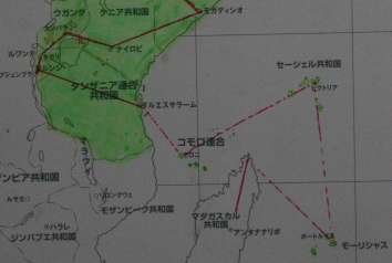 12月31日付け更新です。 (1/4)12月チーム総合ー2058km。世界一周総合ー54201km、 個人距離ー堂谷244km(431-先月分187km)。北川300km、出海532km、中村320km、米沢(直)271km、村西255km、長田114km、新保12km、米沢10km 先月、ウガンダ(カンパラ)51924km〜67ルワンダ(キガリ)52324km〜68ブルンジ(ブジュンブラ)52524km〜69タンザニア(ダルエスサラーム)53624km〜高飛びしてインド洋島めぐり、70コロモ(モロニ)53644km〜71セイシェル(ビクトリア)53649km〜72モーリシャス(ポートルイス)53679km〜マダガスカル島へ上陸、首都アンタナナリボへ向かう途中です。 |