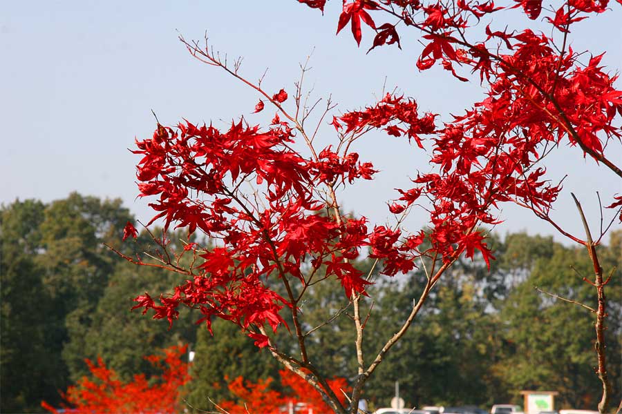紅葉の写真を携帯の壁紙にならないかとあちこち探すが、探すときれいな紅葉はほとんどない。写真の雑誌で見る、真っ赤に燃えた山などどこにもない。いや、木一つ見当たらない。黄色はあるが、赤はない。桜並木の桜も赤いが近づくと茶色。かえで、もみじを見つけても真っ赤はない。道路の並木、通学路の桜並木、色づいているが、どれもイマイチ。物見山競技場も、真っ赤はない。