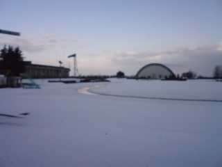 競技場の中に入ろうかと思ったが雪で入る気がしない。手のひらがちょうど埋もれる程度に積もっている。積雪20cmだ。