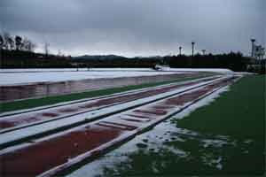 競技場の雪もかなり融けた。クロカンコースは除雪したところが地肌を見せて乾いている。トラツクも昨日1〜2コースを除雪したようでタータンが見える。しかし、雪解けの水で大雨の後のように、びしょ濡れ。クロカンコースの方が走り易い。(携帯は11/7にドボンと落としてから復活。最近なんとも無いが、どうもカメラの写りが悪い。いつもピンボケ気味。)