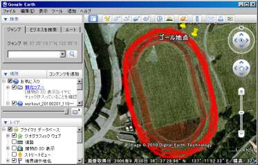 earthにドラッグすると、おっ、地図上にコースが表示される。面白い。観光ジョグに行ったときに重宝されそう。