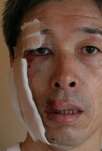 眉の上を数針縫った。見ると顔の右半分、唇、目が腫れて無残な顔になっている。