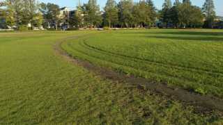 芝生の中を走り込んで、200mコース(1.2m内側)、202mコース、208mコースの足跡を作った。一か月ほど走り込むと足跡ができる。