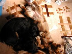 | 【U・・U】byビワ 昨日も今日もお散歩がお休み。ビワはうれしい限りです。ホットカーペットの暖かいところを陣取り、モモ姉ちゃんの横でグーグー寝ています。あ〜のんびりってステキ。そうそう、この前モモ姉ちゃんにかなりやられました。何かした覚えはないのですが、恐かったです。 |
