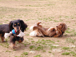 | 【U´▽`U】byビワ 毎日散歩につれていかれます。今日もお友だちのダックスのゆずちゃんと遊びました。びーたんは、お友だちと遊ぶのが大好きです。 |