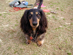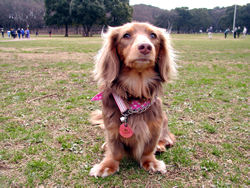 | 【U ̄^ ̄U】byモモ 最近天気が良く、長い時間散歩に連れて行ってもらえる。ラッキー!ボールももちろんガンガンやって、フリースビーをやると、アイドル並に「きゃーきゃー」言われる。モモ様はギャラリーが多ければかなり燃えるのだ。 |