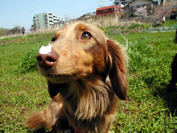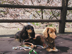 | 【今日は雨・・・】byチホ 早いものでもう3月も終わります。昨日は東京からケリーちゃんとプッチちゃんというMダックスのお友だちが行田公園に遊びにきました。天気が良かったので、花見で非常に混んでいた上に、風がすごくて、長居できませんでしたが、ビワはプッチちゃんと遊びまくってました。帰ってきてからビーたんは、10回くらい連続で吐きまくり・・・(^^;) 何を食べたんだか・・・。消化が良いようにリンゴを擦ってあげようとしたら、ビワはなんとはじめて「いらない」と口にしませんでした!!食欲がないなんて〜〜〜(ToT)と思ったら、夜には回復して普通に食べてました。それからは別に吐くこともないので、大丈夫でした。 今日のモビのお食事は、アジのたたきでした。あまったら私も食べようと思っていたら、グラムが足りなくて私まで回ってきませんでした(^^;) |