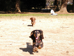 | 【おぉ〜〜!!】byチホ おかげさまで風邪はすっかり治りました!!やっぱり体調が良いっていいですよね〜〜。健康診断も何年も行っていないので、今度血液検査のみやることにしました。母をガンで亡くしているので、血液で腫瘍があるかかどうか分るし、先日申し込みをしてきました。結果は自宅に郵送されてくるそうです。 久々に公園にデジカメを持っていきました。「マテ」して、「オイデ」で呼び寄せて、撮ってみました。ビワが動いている写真を撮れたことに感動!!!ビワは普段なかなか動かないので…(^^;) モモは活発で毎日ルンルンで動いているんですが、ビワは放牧されている牛みたいに、草を食べてゆったりと歩いてます。 |