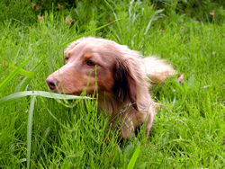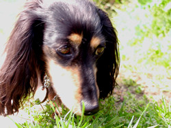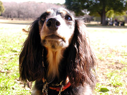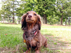 | 【U゚o゚U】byモモ モモ様は、最近チホがいないと不安になるのだ。公園でも前はプチ家出なんてしていたのに、今はそんなこと絶対に出来なくなった。チホが怖いっていうのもあるけどね。そうそう、最近のマイブームはミミズ〜を食べることと体に擦りつけること。ミミズ〜のおかげで幸せになれるのだ。 |