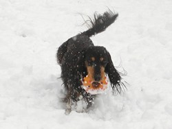 | 【U●⌒∇⌒●U】byビワ 今日はブルブル震えたけど、雪は初めてで、お散歩が楽しかったです。ルンルンだったので、チホ姉ちゃんが驚いてました。セントバーナードのモモコ姉さんは寒くないっていってました。ビワは寒かったので、モモコ姉さんをそんけーしました。 |