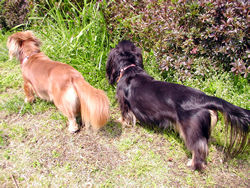 | 【寒かったり暖かかったり…】byチホ もう1月も半ばになってしまいました。モモ様もビワも元気に毎日すごしてます。昨年から、たま〜にモビの歩き散歩もするようになったので、すごく寒い日の散歩も、歩いている間に温まるます。公園にずっと立っているよりいい感じです。モモ様は1発で命令に従わないこともあるので、相変わらず手ごわいですが、それでも本気で言うと従うようになったので、ずっとずっと気が楽になりました。前に比べたらモモ様を叱ることも少なくなったので、毎日のんびり過ごしてます。やらなくなると忘れちゃうので、これからも少しずつしつけしていきます。ビワは小さいころからしっかりやったので、命令にはだいたい従います。ビワのすごいところは、「ビワ」と小さい声で呼んでも振り向くことです。出来る種類はモモ様に比べたら非常に少ないのですが…。あ!親ばかな自慢話になってる!!モモ様もビワも可愛くてしかたありません(*^。^*)なんでこんなにかわいいのか?? |