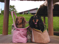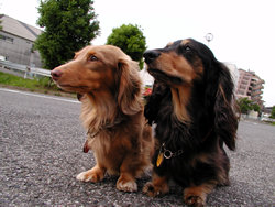 | 【梅雨の合間に…】byチホ 妹と1泊で那須に行って来ました。天気がよく、暑かったです。モモもビワもちゃんとしたお泊りの旅行は初めて。ビワに至ってはお泊り自体も初めてでした。あまり写真も撮ってこなかったので、左の写真だけが那須の写真です。素泊まりのホテルに泊まったですが、ベッドが大きく、とってもきれいでした。平屋のホテルという感じで、すぐ外にもいけますし、じゅうたんだったので、ワンコたちには過ごしやすかったと思います。でも、夜にワンコを連れて行けるようなレストランがないため、多少高くてもペンションのほうがいいかもなぁと思いましたが、私的には安くて大満足のホテルでした。 すぐ外を人が通りますが、モモもビワもホテルでは吠えることもなく、静かにお利巧にしてました。トイレも完璧でした!ランチはお取引をしていただいてるシェークオマールに行ってきたのですが、とってもおいしかったです(*^。^*) でも、モモが後で入ってきた他のお客様に吠えました…。人に吠えたことなんてめったにないのに、なぜあの大切な場で…。ただのお騒がせのバカ犬でした…。すごいショックでした。後で誤解が解けたのか、その方にもすっかり懐いておりましたが…。たまには旅行もいいですね(^-^) |