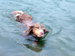 | 【Uё_ёU】byビワ モモ姉ちゃんにつられて川に入ってみました。初めて少し泳いでみました。意外と上手だったかな。チホ姉ちゃんも喜んでました。モモ姉ちゃんみたいにボールはしないけど、満喫しました。 |