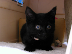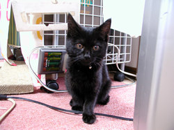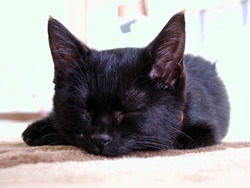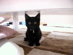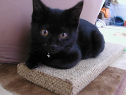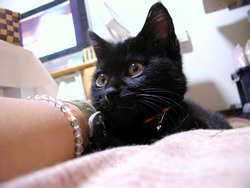 | 【疲れました…】byチホ 今日は大変な一日でした。子猫を一時保護しました。真っ黒なネコちゃんで、魔女の宅急便のジジちゃんみたいです。仕事の帰りに買い物に行った先で保護して車で連れて帰ってきて、自分の駐車場にて逃げられました。ネコを飼ったことがないので、扱いが甘かったです。ノラを増やしてはいけないと必死に探し、3時間くらいしたところで、やっとのことで捕獲しました。病院にも連れて行って検査をしてもらいましたが、健康のようです。ノラちゃんなので、尻尾はちょっと短いし、曲がっています。ものすごくかわいいですが、モモに何度か食べられそうになってました(^^;) ビワは恐がってあまり近寄りません。2ヶ月くらいの女の子です。性格も良いような気もしますが、今日うちに来たばかりでネコかぶっているかな?ご飯はカリカリも良く食べ、うちのワンコのおやつなども平気で食べております。里親さんを探しております。明日、ネコ好きのお友達に面会してみます。あぁ神様…! 今日動物病院に向かう途中、「あれ?今日は13日?」とふと思い、10月11日のビワの誕生日をすっかり忘れてしまってました。母の命日は10月9日で覚えていたのですが…ビワごめん!! |