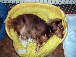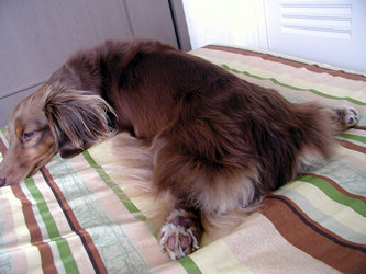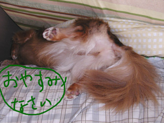 | 【U-.-U】byビワ ず〜〜〜〜〜っと幕張っていうところに連れていかれました。毎日だと疲れるからな〜と思ったけど、ビワはずっと寝ていたので、案外大丈夫でした。モモ姉ちゃんもいたし、毎日それなりに楽しみました。お洋服を着せられたのは納得行きませんが、あきらめました。やっぱりビワは家で寝ているのが一番好きです。 |