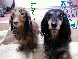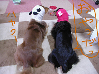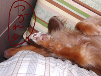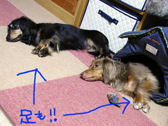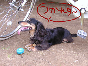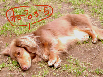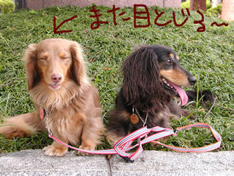 | 公園で、グランドゴルフをやっている人たちに「性格が全然違うのね〜」と笑われました。散歩に行くと笑われるし、「茶色のほうが年が上なんでしょ?」といつも言われます。家でも外でもまったく動かないビワさん…。そんな犬生が楽しいのかな?? | ||||||