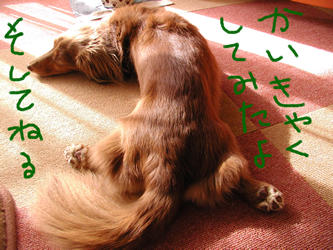 | 【ブログ風日記】byチホ ※写真をクリックしたら少し大きい写真になります。 今日はお友達のお家に遊びに行ったのに、カメラを持っていき忘れました…。ビワさんのマブダチもいたのに〜。 |