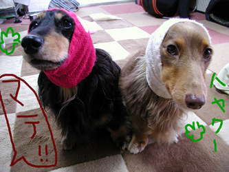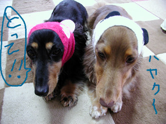 | 【お礼】byチホ 雨ばっかり降っていて、散歩に行くのが億劫です…。春だから晴れたらルンルンなのになぁ〜。モモとビワは相変わらずの生活を送ってます。 日記にてみなさまにお礼を申し上げます。お客様からのメールがとってもうれしいです(*^。^*) 喜んでいただいて、「宝物です」とか「とってもかわいいです」とか。私がちょっと落ち込んでいても、そのメールを読んでいると励まされます。もちろんご要望もうれしいです(*^。^*) いつもできる限り早くお作りして、お送りさせていただくことをモットーとしてやって行こうと思います。 先日もTe quieroさんでカップラー(2頭引き)をお買い上げいただいたお客様より、サイトにも日記としてアップしていただいようで、すごくきれいなお写真だったので、こちらにリンクさせていただきました。いつもみなさんに元気をもらってます。いつもありがとうございます。 |