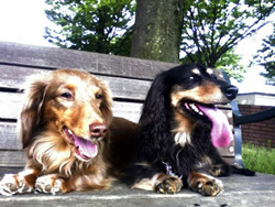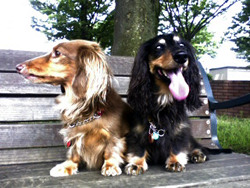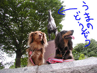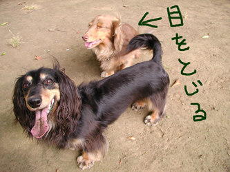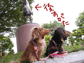 | 【ブログ風日記第2弾】byチホ ※写真をクリックしたら少し大きい写真になります。 1時間弱の散歩…。モモとビワはいつもこんな感じです。 |