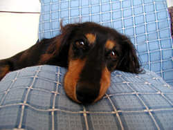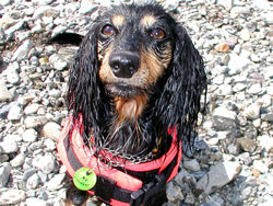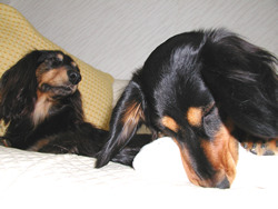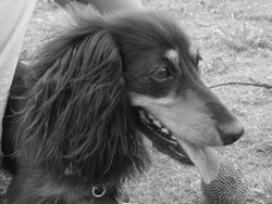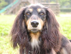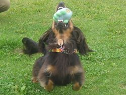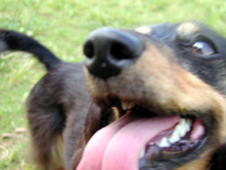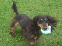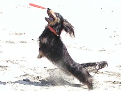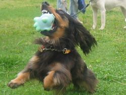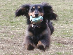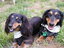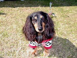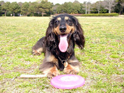 | 【すごいっ】byチホ 先日モモ様は早川先生にフリスビーをしてもらいました。とても楽しそうに遊んでました。先生も相当の犬好きですが、とてもクールです。モモ様は偶然会った俳優のさといけんたさんにも、よだれでべとべとのボールを投げてもらったことがあります。モモって意外とすごいかも〜。 最近心を入れ替えてモモ様のブラッシングしています。モモはブラッシングも大嫌いで、「ブラシするよ〜」というと、ハウスに入ってしまいます。無理やり連れてきてブラシをすると相当毛が抜けます。今まで2ヶ月くらいサボってたからかな?4日くらいで、貧乏臭さはなくなり、だいぶきれいになりました。ツヤツヤの品のいいダックスになりますように(^-^) |