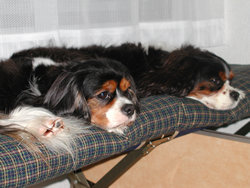 | 【ネオありがとう】byチホ 公園のお友達のキャバリアのネオが土曜日に天国に行ってしまいました。私もかなりショックです。3歳になったばかりだったのに・・・。日曜日にママさんがネオを連れて、公園に来てくれました。安らかな顔で声をかけたら起きてくるような気がしてしまいました。ネオ、天国でもボールでいっぱい遊んでね。モモと遊んでくれてありがとう。 |