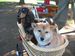 | 【ちょっと思ったこと・・・】byチホ 朝9時くらいに行ったら一生懸命訓練をしている人がいました。すばらしいっ!!モモ様も訓練をしながら遊びました。でも、最近しつけをしない飼い主さんが多いらしく、どこの公園も乱れているようです。ケンカをしたり、飼い主の言うことを聞かないワンコは公園で離す事が出来ないはずなのに・・・(うちのモモもやるほうなので、かなり気をつけてます) あと、夏休みなどに目立ったのは、小さい子供だけで来るワンコの散歩です。小さい子供だけの散歩は、なるべく控えたほうがいいかと思います。犬である以上、何がおこるかわからないし、何かあったときにきちんと対応できる大人同伴でないといけないと思います。実際に、子供が散歩に連れてきたワンコがケンカをし、流血しているのを見たことがあります。そのときも対応が遅くなったことは言うまでもありません。ちょっとグチっぽくなった今日この頃・・・。気持ちのいいワンコライフをおくるために頑張りましょう!! |