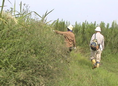 中流域から下流域まで3ヶ所のフィールドを見学。台風で増水したために、河川敷のオギ群落が荒れていたが、それでも作りかけを含めて6個の球状巣を見つけた。残念ながら子どもは見つからなかったが、白石先生のお話では、秋の繁殖シーズンのピークは10月とのことなので、これからが楽しみだ。