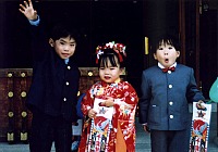 1999年の秋 三人そろって七五三 いい表情でとれました。 左から萌希(もえき) 彩花(あやか) 絃希(げんき) |