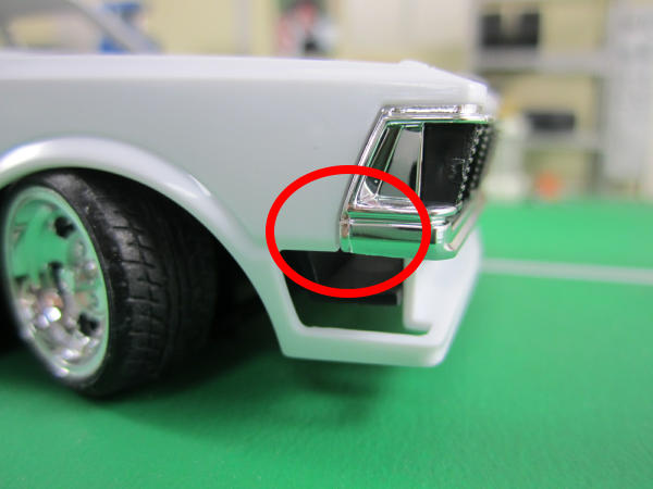バンパーを取り付けた際、直線的な形状にならず窪んでいるように見えてしまうので修正要。 |