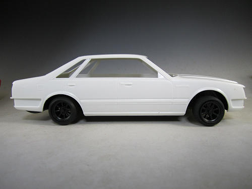 パッケージはこんな感じです。 ボックスアートは当時のカタログからのようです。 車高落として渋い感じで出来ればいいなぁ〜 なんて思ってますがしっかりしたコンセプトが今のところないので 完成した時どんな感じになるかいまいち不安です。 | まずは車高を確認。 ホイールは画像のようにタワナベにします。 足回りに手を加えずそのまま仮組みすると何ともトンチンカンな感じ… フロントなんか四駆なみの高さです。。。 |